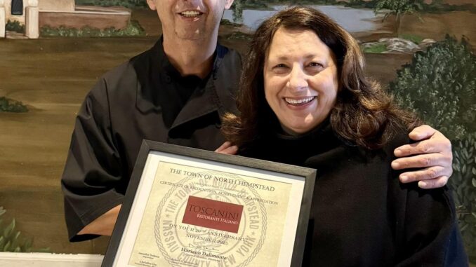 Dalimonte also celebrated the 20th anniversary of Toscanini Ristorante Italiano, a dining staple known for its welcoming atmosphere and delicious Italian cuisine. Owner Freddy has spent two decades creating a place where everyone feels like family. His generosity and unwavering support for the Port Washington community have made Toscanini far more than just a restaurant.
