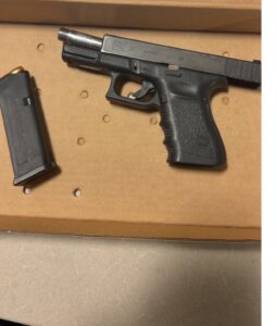 During the course of the investigation, a loaded Glock 23 .40 caliber handgun was allegedly located on Randazzo and Roye was allegedly in possession of a switchblade knife.