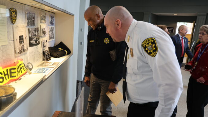 The Suffolk County Sheriff’s Office History Exhibit recently premiered at Riverhead Town Hall. This exhibit showcases a curated collection of Sheriff’s Office artifacts, historic photographs, uniform items, and a timeline that highlights the evolution of the agency and its role in serving the County. The Sheriff’s Office is the oldest law enforcement agency in Suffolk County, tracing its roots back to 1683.