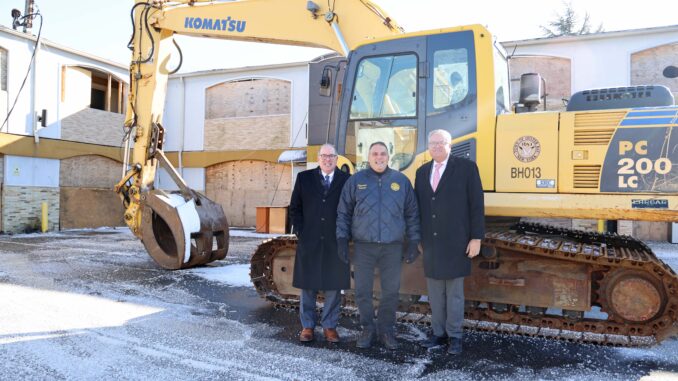 Oyster Bay Town Supervisor Joseph Saladino, Councilman Andrew Monteleone and Town Clerk Richard LaMarca joined with members of the Town Highway crew to commence the demolition of the Budget Inn Motel. The town board said this has been a longstanding eyesore in the Massapequa community.