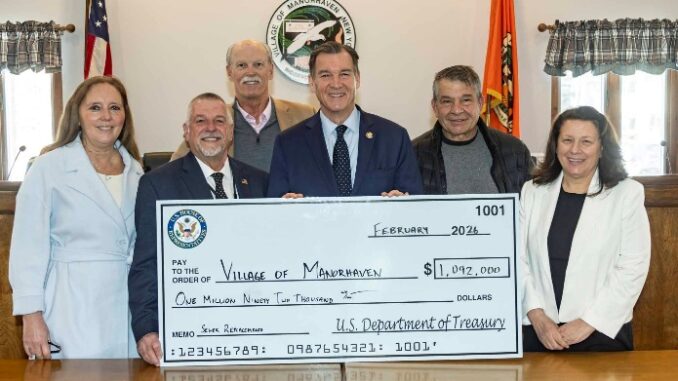 Manorhaven Village received $1.092 million to aid in the replacement of a nearly 70-year-old gravity sewer pipe beneath Sheets Creek Channel, while the Port Washington Water Pollution Control District’s $1.092 million federal allocation will be applied toward essential upgrades for a pair of pumps that are over 60 years old.