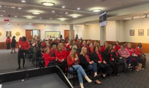 The campaign noted that, after the NRGG rally, a group of approximately 100 women dressed in red attended a legislative meeting to show support for the county executive and opposition to Koslow’s “toxic and dangerous agenda.”