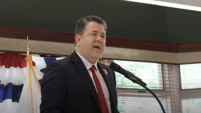 (Photo: Matt Meduri) U.S. Congressman Nick LaLota speaking at Stony Brook University in 2024.
