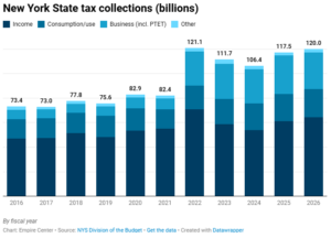 Despite the robust growth of state revenues in recent years, many of New York’s elected officials are pushing to further increase the tax burden on the state’s residents and businesses.